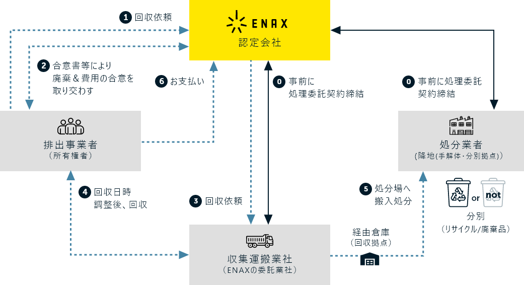 本来、産業廃棄物の処理は、地方公共団体ごとに許可を得たうえで行う必要があります。しかし、環境省から「広域認定制度」の認定を受ければ、メーカーは自社の廃棄製品を回収・リサイクルすることができます。電池の開発・サンプル試作から製品化まで、高い技術力とコンサルティングによりお客様のご要望に合ったテーラーメイドのバッテリーを提供するENAXでは2021年12月に広域認定を取得したことにより、お客様のご要望に応じて廃棄の対応も可能になりました。