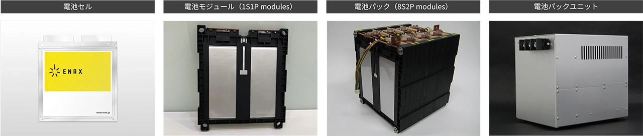 電池セルには様々な性能・規格のものがあります。用途に合わせて必要な性能が取り出せるよう、ENAXでは電池セルの選定および評価からモジュールの設計、電池パックユニットの構造設計を行っています。