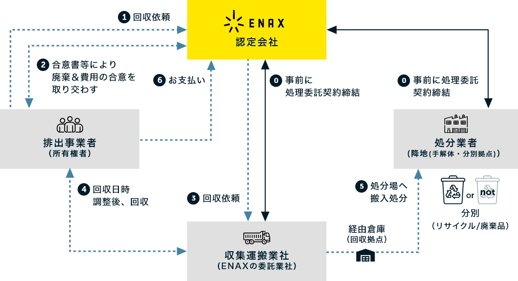 ENAX(エナックス)は、お客様へのアフターサービスの一環として、広域認定を取得(2021年12月取得)し、バッテリーの回収・運搬を行うことができます。